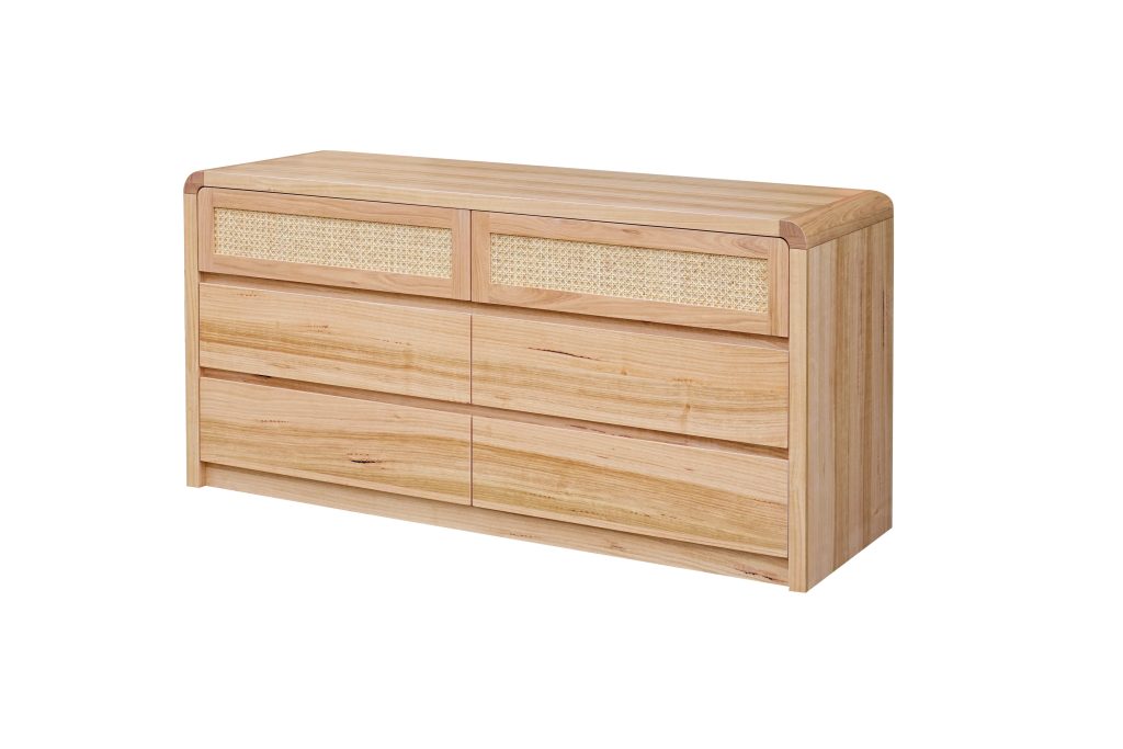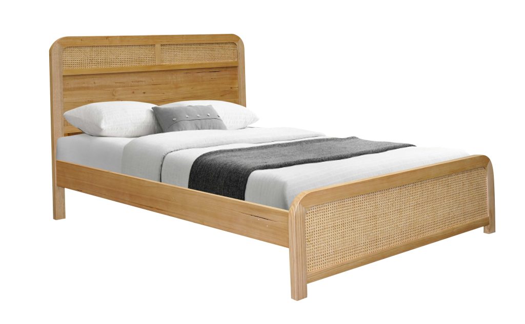 This Byron Bedroom Suite features a rattan headboard and footboard surrounded in natural hardwood timber for that modern coastal style.